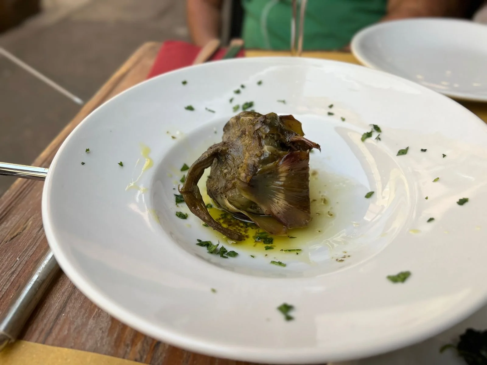 Carciofo alla romana, que é alcachofra grelhada ao alho e óleo, e